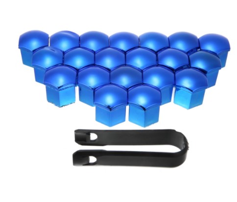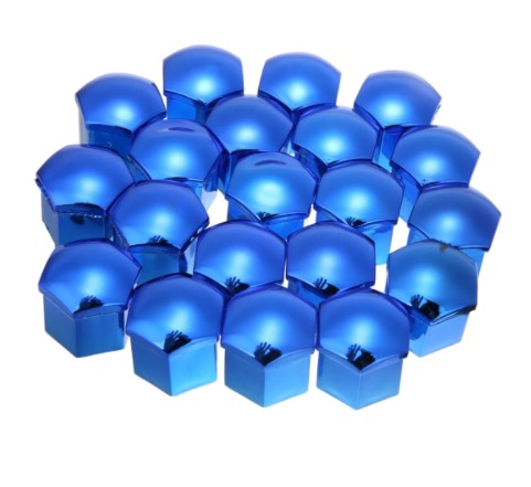 Úvod »Ventily»Bezdušové ventily » Sada čiapočiek na skrutky a matice 17 mm, modré lesklé