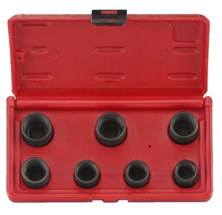 Sada na demontáž poškodených skrutiek a matíc. Pri otáčaní proti smeru hodinových ručičiek sa nástroj zahryzne do hlavy poškodenej skrutky alebo matice a tým ju uvoľní. Sada obsahuje niekoľko rozmerov. Tým bezproblémov povolíte aj skrutky s obrúsenými hranami. Použiteľné pre skrutky s hlavami o rozmeroch 17,18,19,21,22 mm